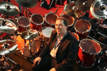 Frankfurtin musiikkimessujen tämänvuotisen Vintage Show -näyttelyn komeimpia täkyjä oli Chester Thompsonin rumpusetti Genesiksen kahdenkymmenen vuoden takaiselta ”We Can’t Dance”-maailmankiertueelta.