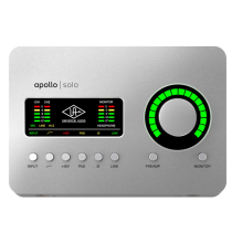 Kaksi kanavaa sisään ja kaksi ulos, kuuntelu kuulokkeilla tai kaiuttimilla, siinä raamit UA:n pienimmälle Apollo-sarjan interfacelle.