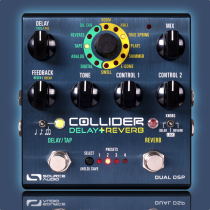 Source Audio Collider yhdistää valmistajan mukaan suosituimmat soundit sen Nemesis Delay - ja Ventris Reverb -pedaaleista. Ensin mainitusta on mukana viisi suosituinta viivesoundia ja jälkimmäisestä seitsemän suosituinta kaikua. Pedaali tarjoaa on kaiku- ja viivepuolelle omat DSP:t, joten kaiku ja delay voivat olla päällä samanaikaisesti.