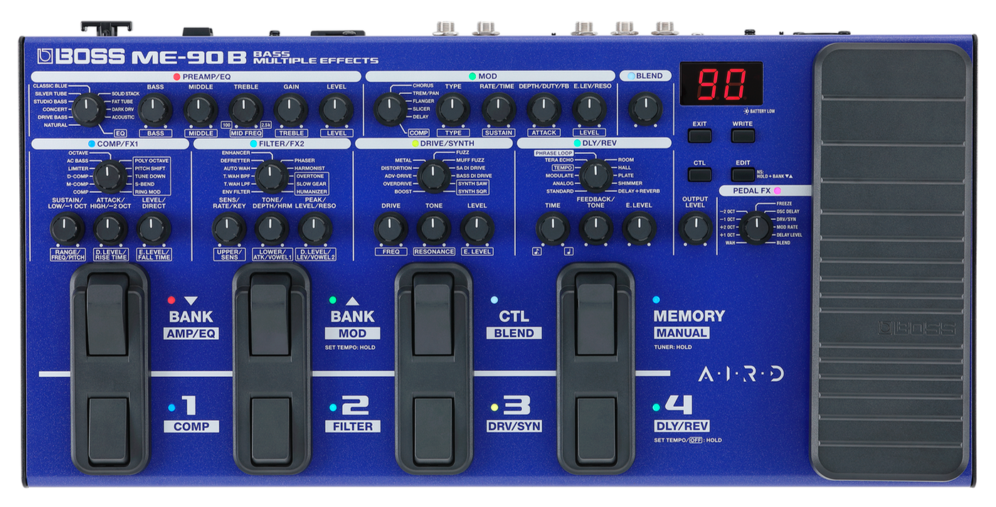 Bossin ME-sarjan multiefektit sähkökitaralle ja -bassolle ovat tarjonneet jo pitkään soittajille laajaa efektivalikoimaa yhteen laitteeseen pakattuna. Soundin ohella valmistaja on aina satsannut käytettävyyteen, eikä bassolle tarkoitettu ME-90B tee poikkeusta.