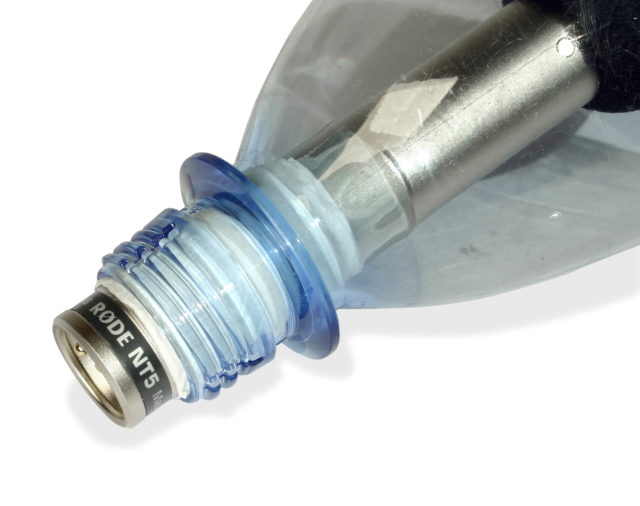 Röden NT5-pari oli sopivan hintainen ja kokoinen mukaan otettavaksi. Teippiä runkoon ja sovitus pullon suuaukkoon oli juuri passeli.