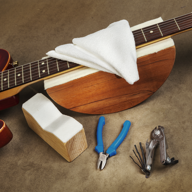Esimerkiksi Music Nomad valmistaa erikoisvälineitä kielisoitinten puhdistukseen. Kannattaa huomioida, että myös puhdistusliinoja on erilaisia, tekstuuriltaan pehmeitä ja kovempia. Liinakin on syytä valita aina pinnan ja hoitoaineen mukaan, jotta tulos olisi kelpoinen.