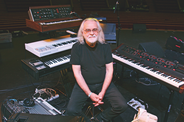 Esa Kotilainen kuvattuna Wigwamin 50-vuotisjuhlakonsertissa Kulttuuritalolla. Tällä kertaa kalustossa mukana se keikoilla ongelmattomampi digitaalinen vaihtoehto, Memotron. Kuva: Tommi Saarela