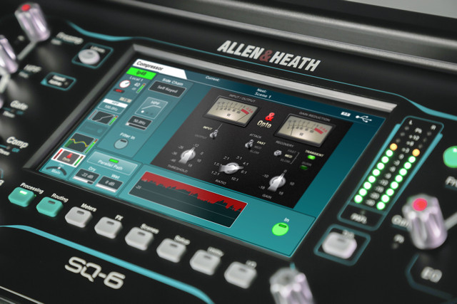 SQ-sarjan 96 kHz:n taajuudella toimivan XCVI-prosessoriytimen ja viimeisimmän FPGA-tekniikan ansiosta sekä kompressoriplugi että Allen & Heathin sivustolta SQ-käyttäjille ilmaiseksi tarjottava Tube Stage preamp -plugi voidaan ottaa käyttöön kaikissa 48 tulokanavassa samaan aikaan.