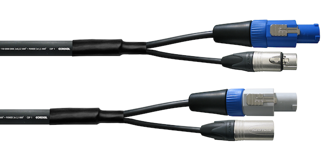 Cordial julkisti kehittämänsä yhdistelmäkaapelin, jossa on omat liittimensä ja johtimensa valaisimen tarvitsemalle virralle sekä valaisimen ohjaukseen käytettävälle DMX-signaalille.
