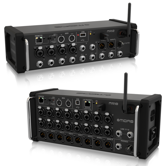 MR12 on varustettu neljällä Midas Pro -mikrofonivahvistimella, MR18 peräti kuudellatoista.