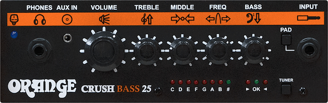 Jokaisessa Orange Crush Bass –sarjan vahvistimessa on kromaattinen viritysmittari.