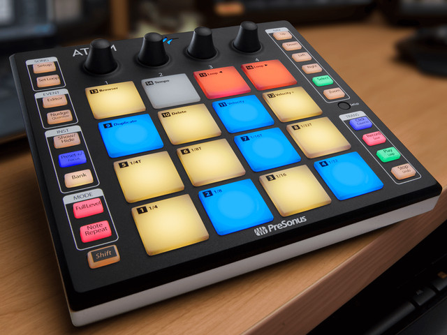 Atomin 16 naputtelutyynyä tunnistavat napautuksen voimakkuuden sekä kosketuksen paineen, ja sitä voi käytää sekvensserin rumpu- ja lyömäsoitinosuuksien ohjelmointiin, realiaikaiseen soittoon, tai vaikka äänitehosteiden liipaisuun.
