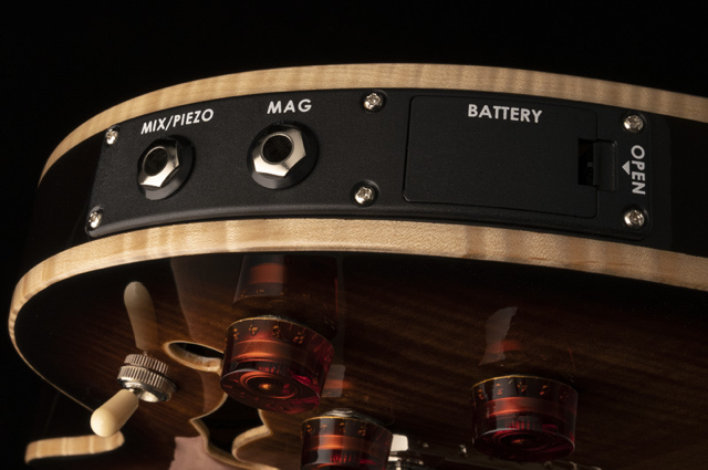 PRS SE Hollowbody II Piezo on varustettu kahdella lähdöllä, joista Mag on vain humbucker-soundia varten.