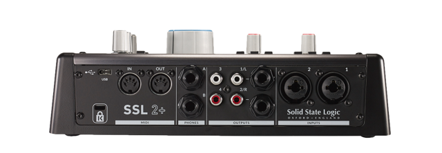 SSL 2+:ssa on liitännät tarkkaamokaiuttimille sekä kaksi omilla säätimillään varustettua kuulokeliitäntää. Neljän lähtökanavan ansiosta kumpiinkin luureihin voi ajaa oman miksauksensa.