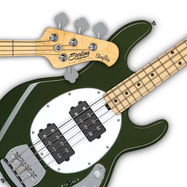 Sterling By Music Man SUB RAY4 HH on tuore näkemys Musarin legendaarisesta StingRay-bassosta. Siinä on lehmuksesta valmistettu runko, joka on viimeistelyltään oliivinvärinen.