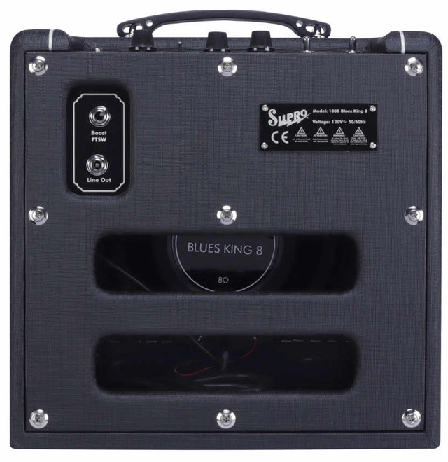 Kuten arvata saattaa, Supro Blues King 8 on suunnattu ennen kaikkea kotistudioiden äänityskoneeksi. Tämän vuoksi vahvistimen takapaneelista löytyy linjalähtö, joka on sijoitettu kytkennässä ennen master-volumea.